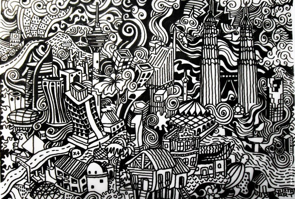 Doodle yang dilakukan dengan teknik sketch terlebih dahulu, tetapi ia cuma sketch ringkas sahaja.