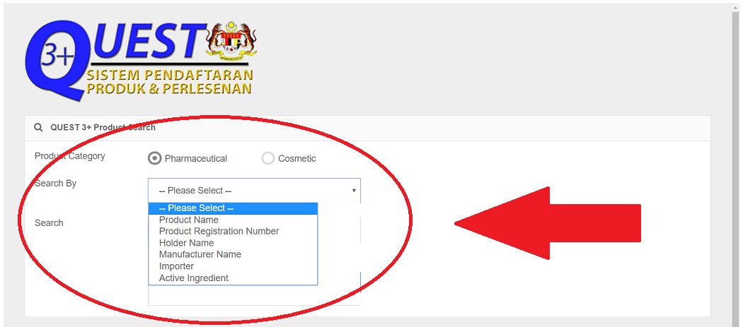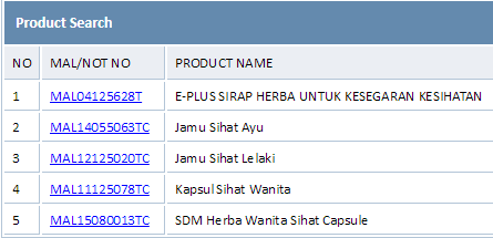 - Carian boleh dilakukan berdasarkan Nama Produk, No Pendaftaran Produk, Pengilang, Pengimport dan banyak lagi.