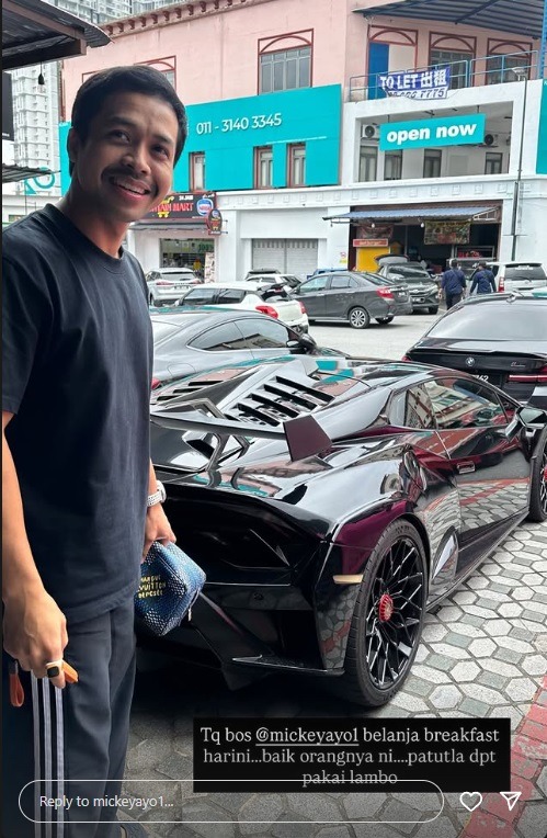 Momen tersebut dikongsikan oleh rakan-rakan Mickey menerusi InstaStory, yang jelas kagum dengan pencapaian lelaki berusia 35 tahun itu selepas berjaya memiliki kenderaan mewah dianggarkan bernilai lebih RM1 juta.
