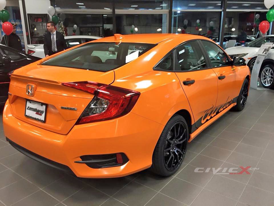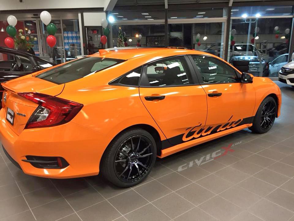Honda Civic 2016 dengan warna Gloss Orange ini dikongsikan oleh Lombardi Honda di Quebec, Kanada. Modifikasi yang dilakukan adalah standard modified dan tidak terlalu over atau menonjol, sesuai untuk kegunaan harian.