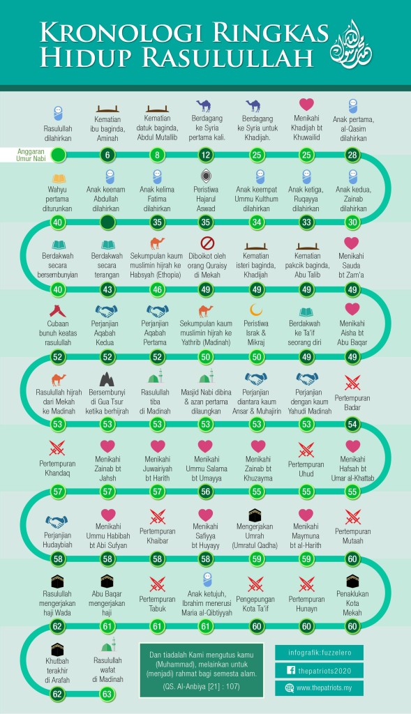 Sempena Maulidur Rasul pada hari ini, disertakan infografik dan poster ringkas tentang kronologi hidup Nabi Muhammad s.a.w