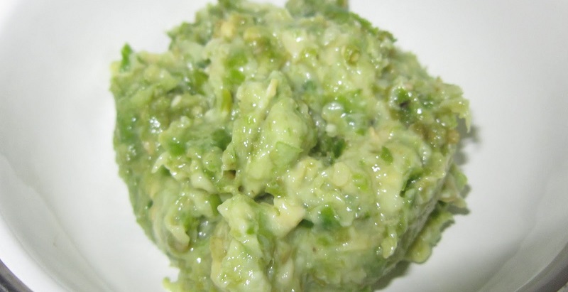 - Tumbuk cili padi dan garam kasar bersama.