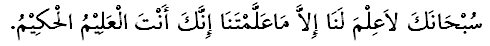 “Maha Suci Engkau yang tiada ilmu bagi kami kecuali apa yang Engkau ajarkan (tunjukkan) kepada kami. Sesungguhnya Engkau Maha Mengetahui lagi Maha Bijaksana.”