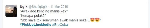 Jika anda berminat dengan pickup line sebelum ini, boleh rujuk link di bawah: