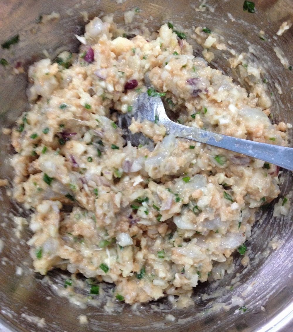 - Beberapa ekor udang – dicincang (perapkan dengan sedikit baking powder selama 15 minit, cuci dan toskan)