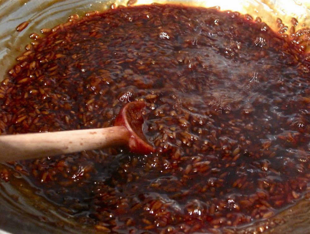 - Masukkan pulut yang telah dikukus dan kacau rata. Gaul sehingga sebati dan berkilat.