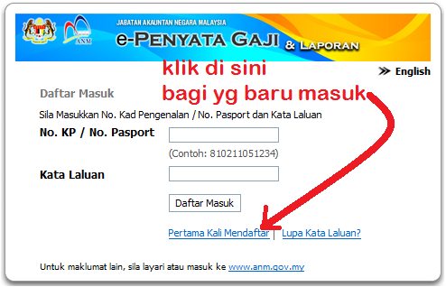 Klik untuk Semakan e-Penyata Gaji Online menggunakan No. KP / No. Pasport.